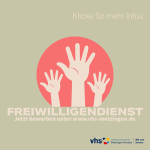 Bewirb' Dich für ein freiwilliges soziales Jahr bei uns in der vhs Metzingen-Ermstal! Wir informieren Dich über die Stelle bei uns und klären alle Deine Fragen.